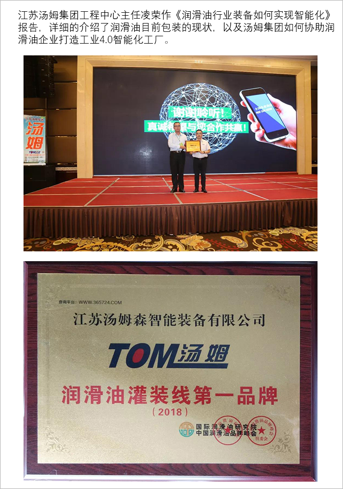 江蘇湯姆集團獨家冠名的2018潤滑油品牌峰會(huì )圓滿(mǎn)結束!