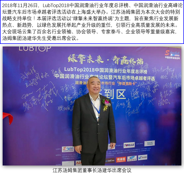 湯姆集團榮獲"LubTop2018中國潤滑油行業(yè)智能灌裝線(xiàn)特別貢獻領(lǐng)軍企業(yè)"稱(chēng)號