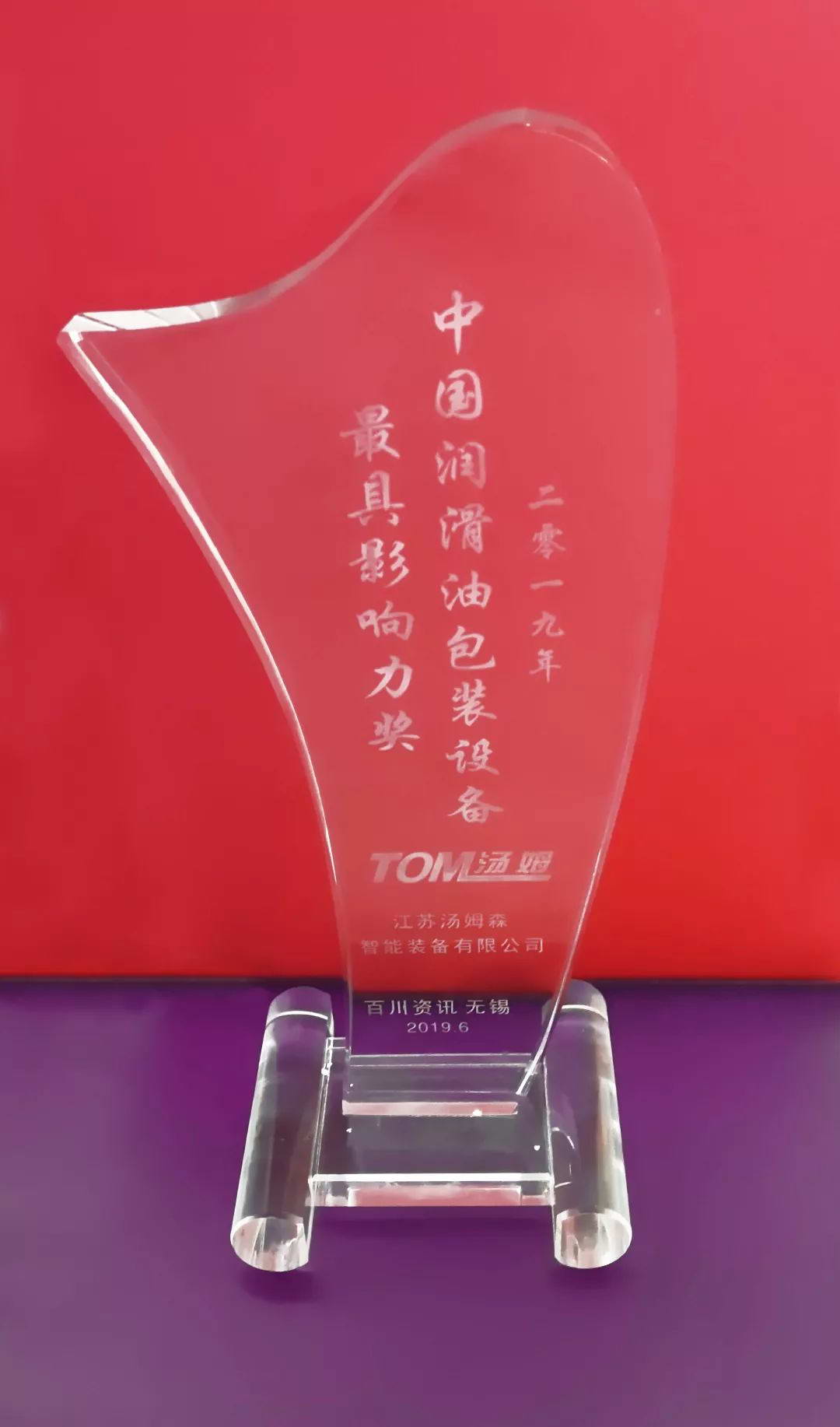 江蘇湯姆集團斬獲“2019中國潤滑油包裝設備最具影響力獎”
