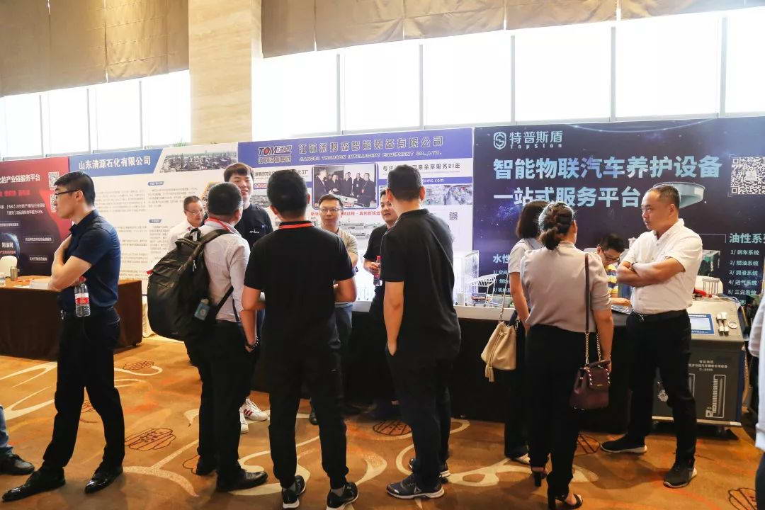全國潤滑油企業(yè)聯(lián)盟主席李學(xué)龍(左二)、張晨輝教授(右三)親臨我司展臺