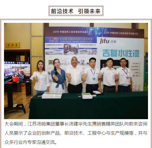 江蘇湯姆集團熱烈祝賀2019中國涂料工業(yè)未來(lái)技術(shù)發(fā)展大會(huì )圓滿(mǎn)落幕