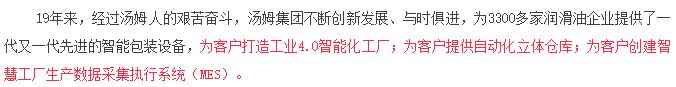 【福利】湯姆集團--湯姆森--國內唯一成功替代進(jìn)口灌裝線(xiàn)的潤滑油智能裝備生產(chǎn)企業(yè)