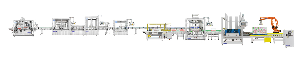 2、整線(xiàn)自動(dòng)化程度高,由理瓶-灌裝-旋蓋-上蓋-噴碼-鋁箔封口-貼標-開(kāi)箱-裝箱-檢重-供棧-碼垛等設備組成。流水線(xiàn)配備 高速灌裝、旋蓋機,