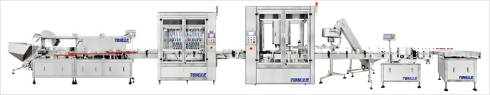 LP-7理瓶機、DGP-Z-16D直列式活塞灌裝機、XG-6B旋轉式旋蓋機(或Fxz-A直列式旋蓋機)