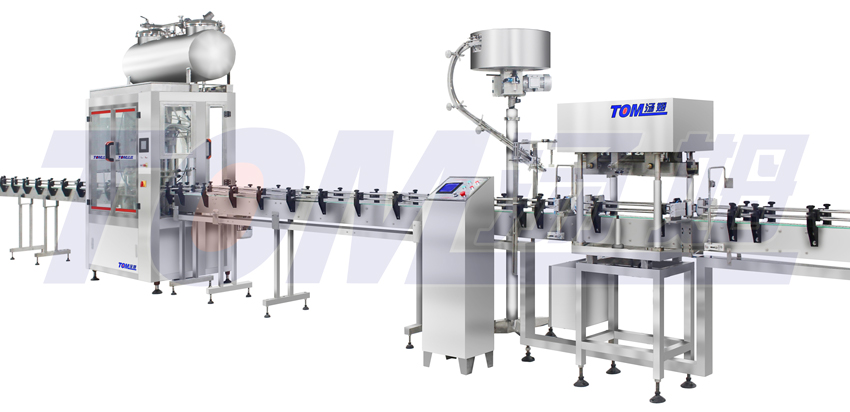 本流水線(xiàn)中灌裝機采用料倉加壓灌裝,具有精度高、速度快、性能穩定、計量調節快捷等特點(diǎn),是國內1-5L包裝線(xiàn)理想設備。